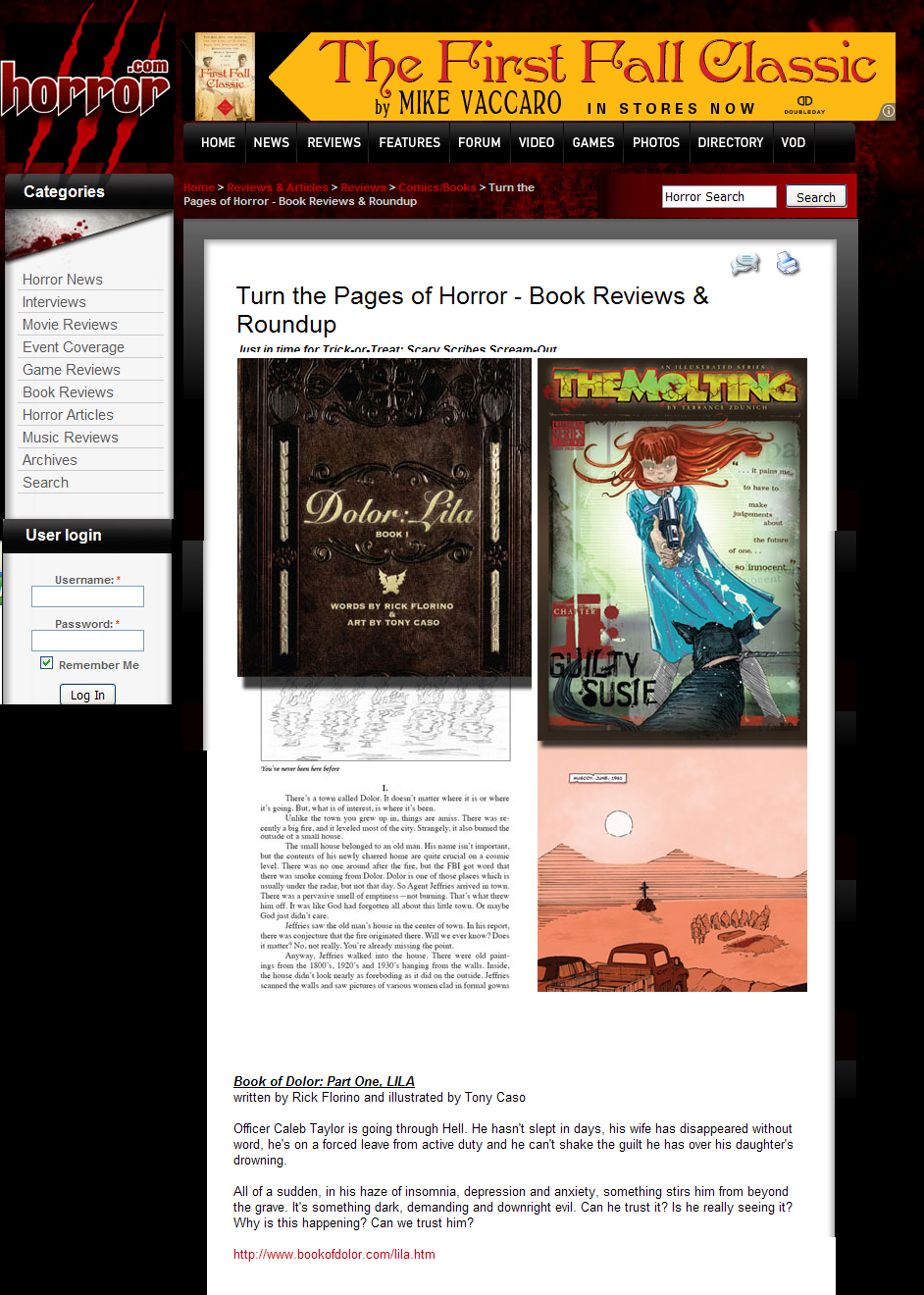 DreadCentral.com's Elaine Lamkin wrote a fantastic review about DOLOR: Lila | Book I. She also interviewed Dolor author Rick Florino! Check out the review here and the interview here!